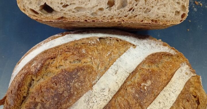 Hogaza Espelta Roja Semi-Integral (trigo antiguo) – 850 gr. aprox. 7,00 € Harina Espelta Roja semi integral ecológica, agua, 20% Masa Madre de Espelta Roja semi integral y sal marina. ALÉRGENOS: Gluten - Nota: Se entrega rebanado a 13 mm. de grosor, si lo quieres entero sin cortar especifícalo al hacer el pedido.